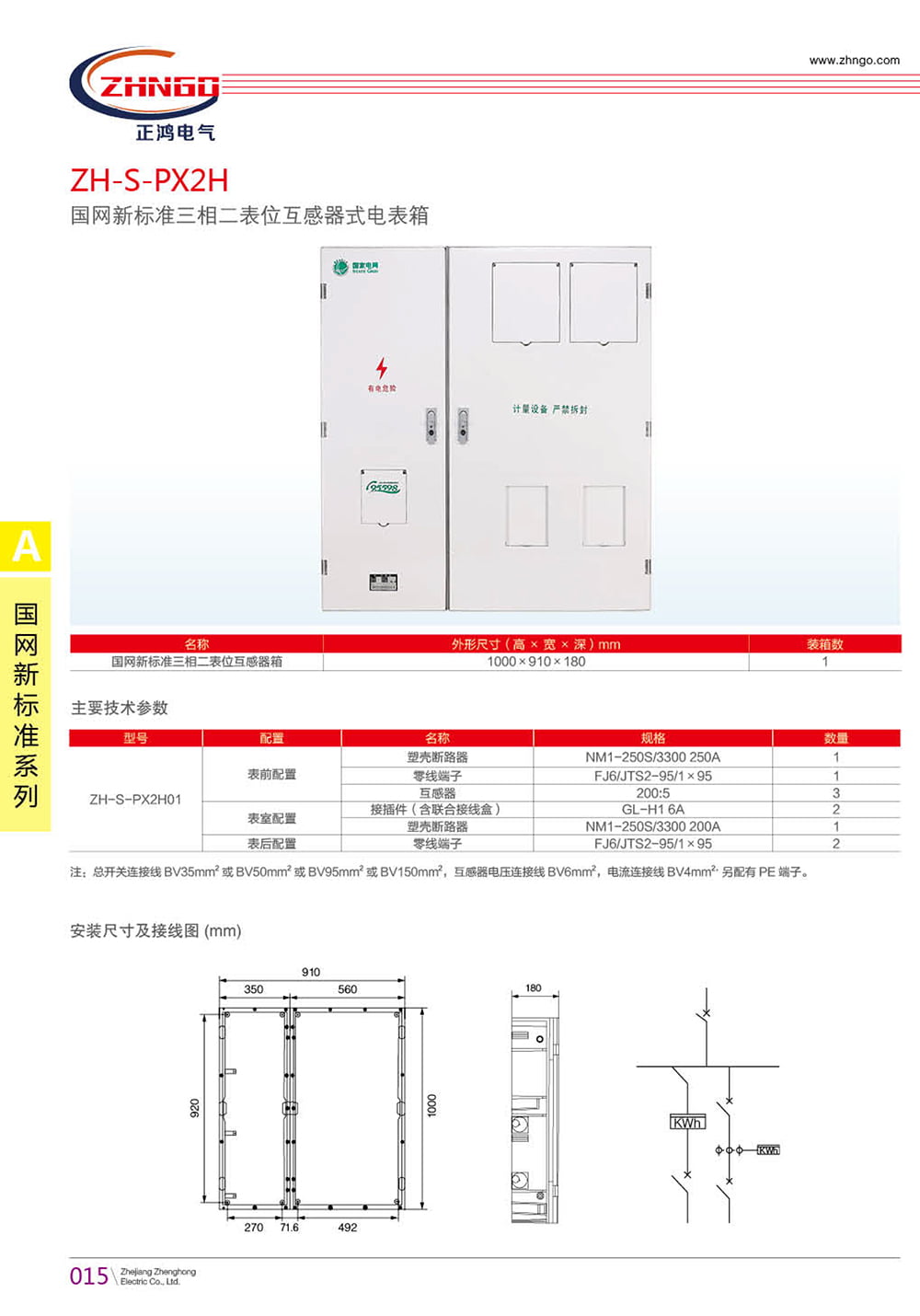 注:總開關(guān)連接線 BV35mm 2或 BV50mm 2 或 BV95mm 2 或 BV150mm 2 ,互感器電壓連接線 BV6mm 2 ,電流連接線 BV4mm 2, 另配有 PE 端子。