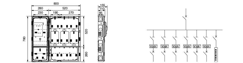 注:總開關(guān)連接線 BV16mm 2 或 BV25mm 2 電能表連接線 BV6mm 2 或 BV10mm 2 。