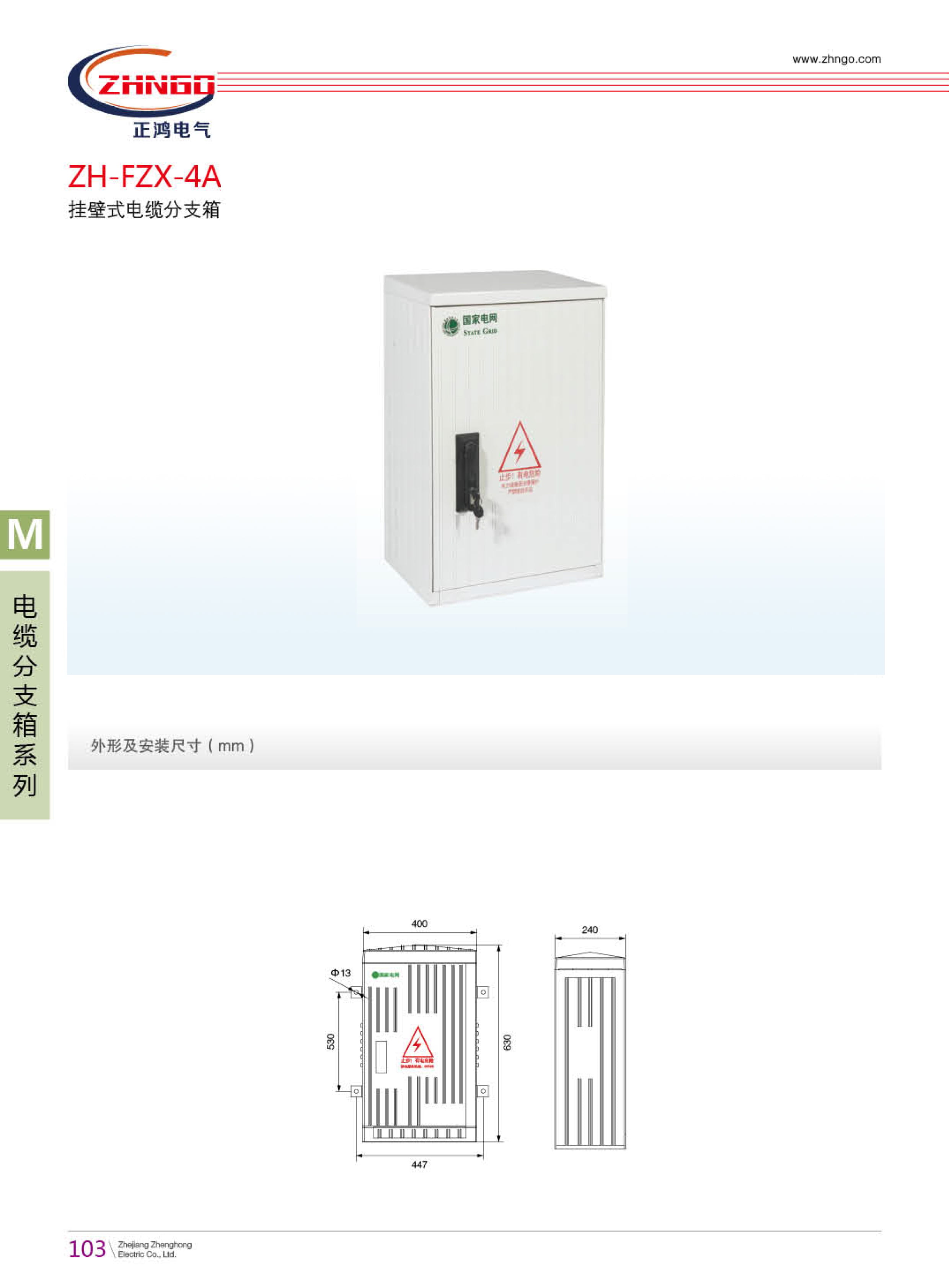 浙江正鴻電氣有限公司生產(chǎn)的 SMC 電纜分支箱主要用于公共電網(wǎng)中,新型多樣的接線方式和元器件布置,能完全實(shí)現(xiàn)不鉆孔母線排安裝,母排承載流量不受影響。根據(jù)輸配電網(wǎng)和用戶(hù)的需求,提供多種分線方式,箱體類(lèi)型及安裝方式靈活多變。在國(guó)家域網(wǎng)建設(shè)和改造中,是取代架空進(jìn)線的介紹支持產(chǎn)品。其廣泛用于變配電站所、公礦企業(yè)、街道兩側(cè)、花園住宅小區(qū)、高層建筑、機(jī)場(chǎng)等戶(hù)外公共場(chǎng)所的三相低壓輸配電系統(tǒng)中,作為用電纜向其他用戶(hù)或設(shè)備分配電能的成套定型設(shè)備。