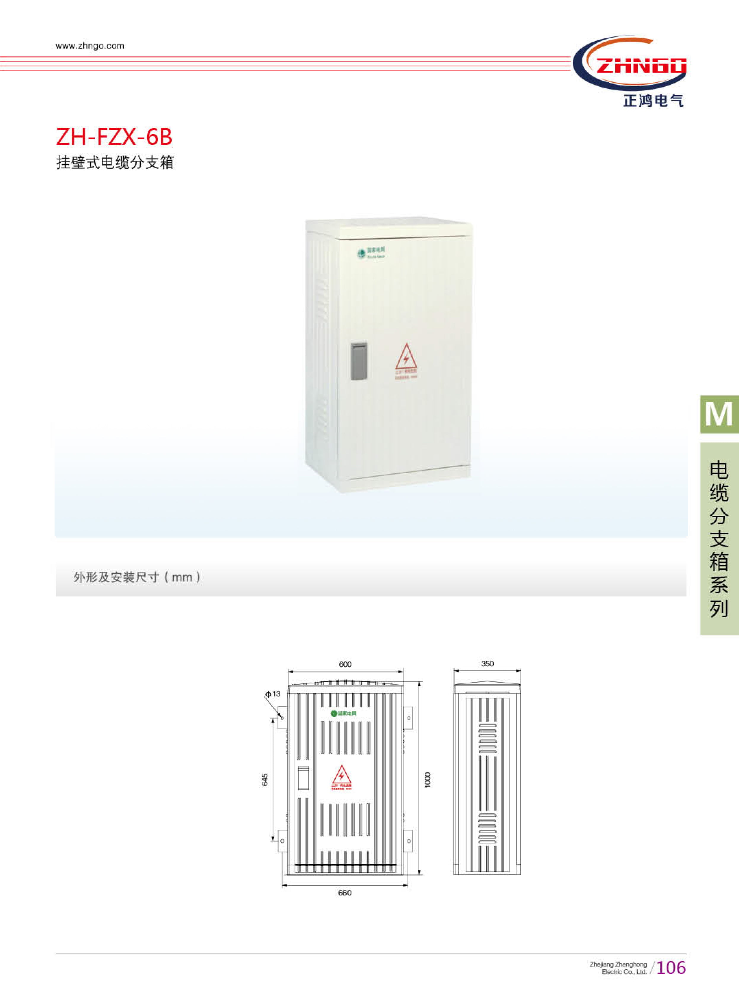浙江正鴻電氣有限公司生產(chǎn)的 SMC 電纜分支箱主要用于公共電網(wǎng)中,新型多樣的接線方式和元器件布置,能完全實現(xiàn)不鉆孔母線排安裝,母排承載流量不受影響。根據(jù)輸配電網(wǎng)和用戶的需求,提供多種分線方式,箱體類型及安裝方式靈活多變。在國家域網(wǎng)建設和改造中,是取代架空進線的介紹支持產(chǎn)品。其廣泛用于變配電站所、公礦企業(yè)、街道兩側、花園住宅小區(qū)、高層建筑、機場等戶外公共場所的三相低壓輸配電系統(tǒng)中,作為用電纜向其他用戶或設備分配電能的成套定型設備。
